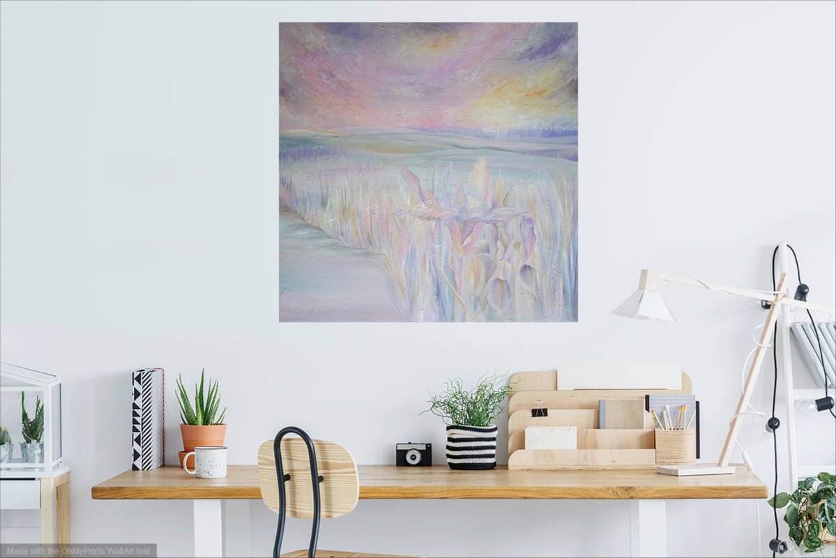 The title Secrets of Nature is a deliberate invitation to look more closely. At first glance, this oil painting may appear to be a delicate study of an iris flower within a pale landscape. But hidden within the petals is a human form, neither fully flower nor fully human, but a fusion of both. This subtle integration reflects the central message of the work, humanity is not separate from nature, but deeply embedded within it.